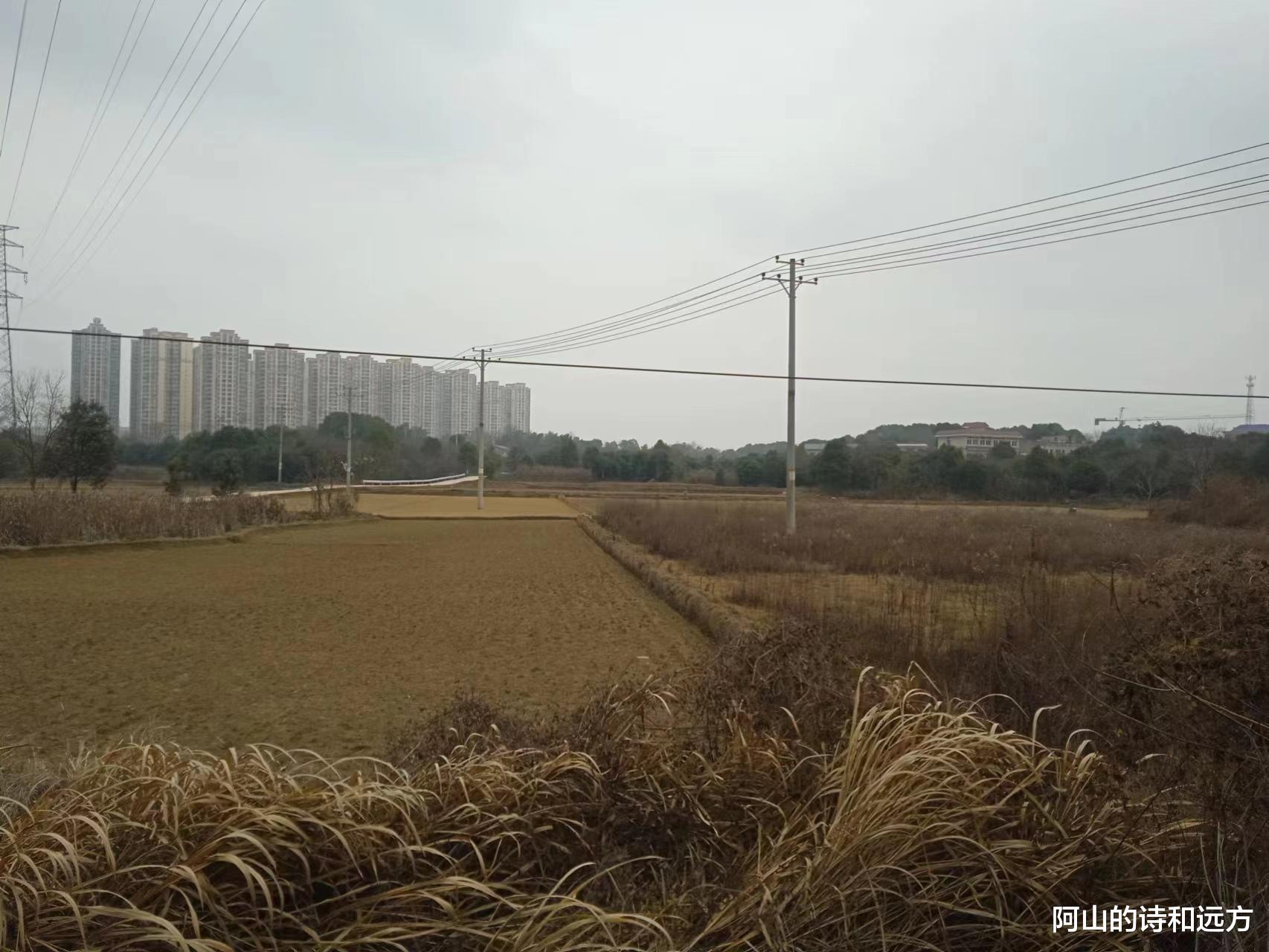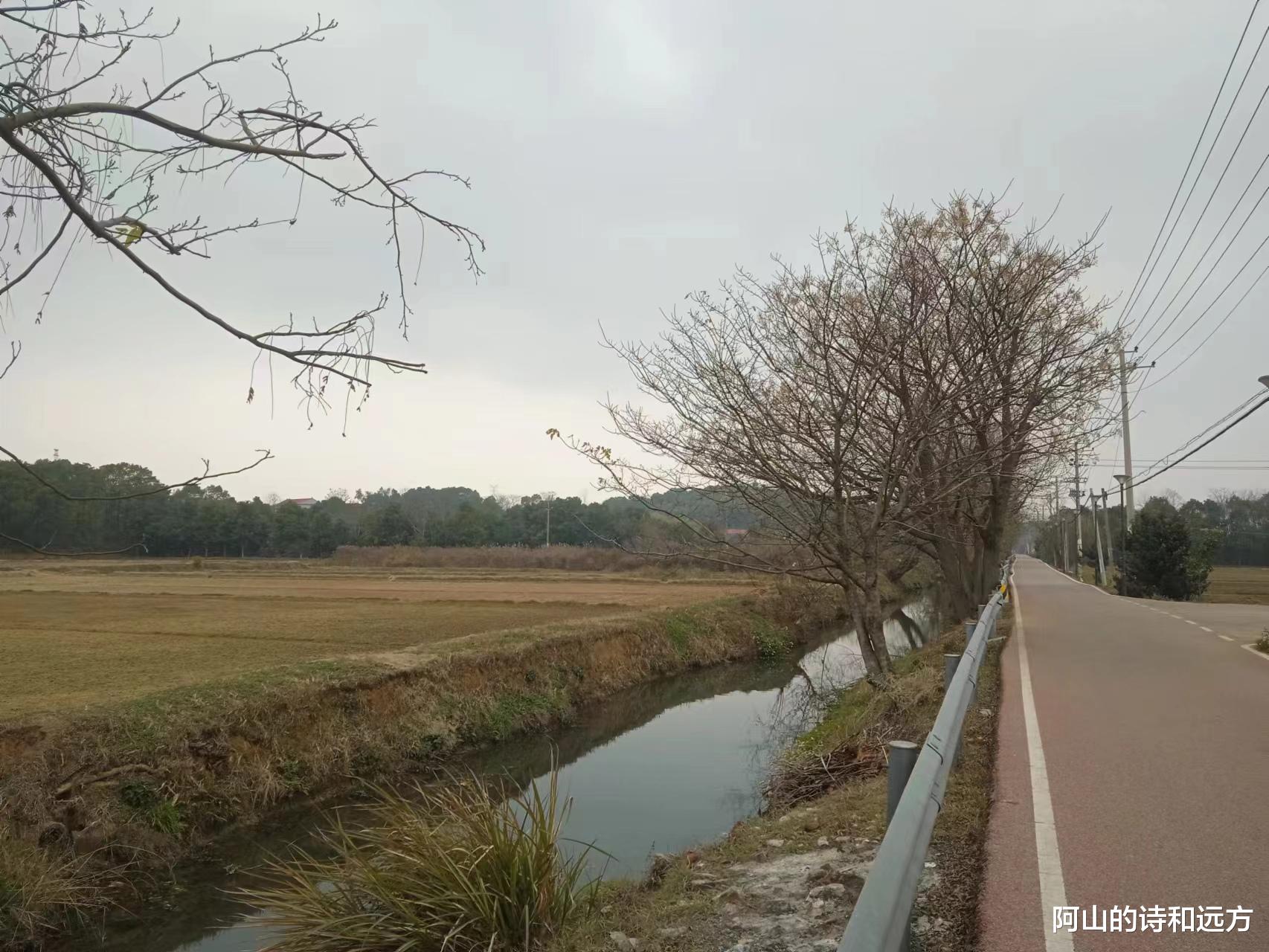 过土塘寺桥,可以看到大片的空旷地带,主要是枯黄的杂草和待种的田地。