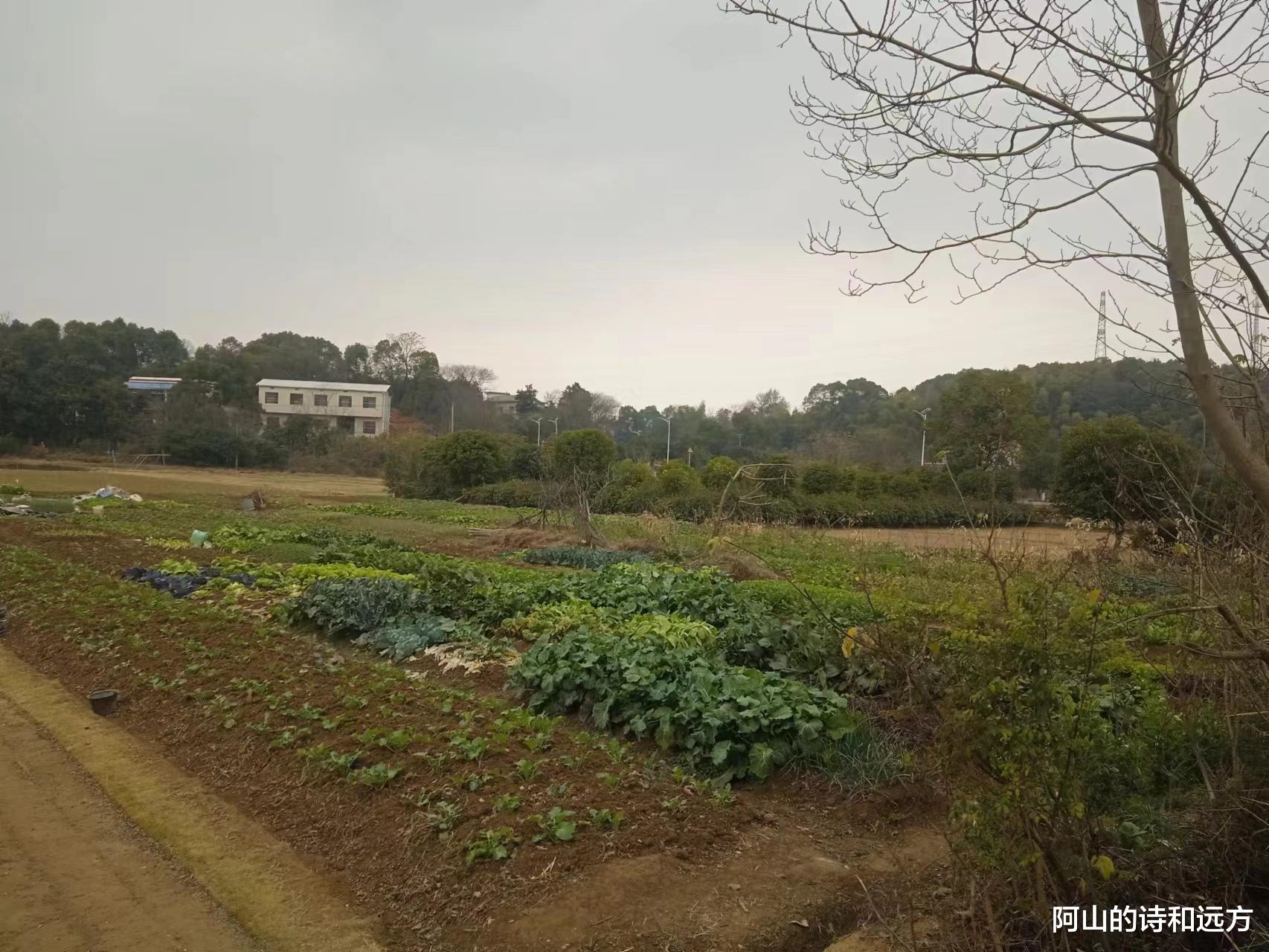 碧绿的菜地总会让人多看几眼。大片大片平整的田园裸露着黄土,与外围的树林形成强烈的对比。