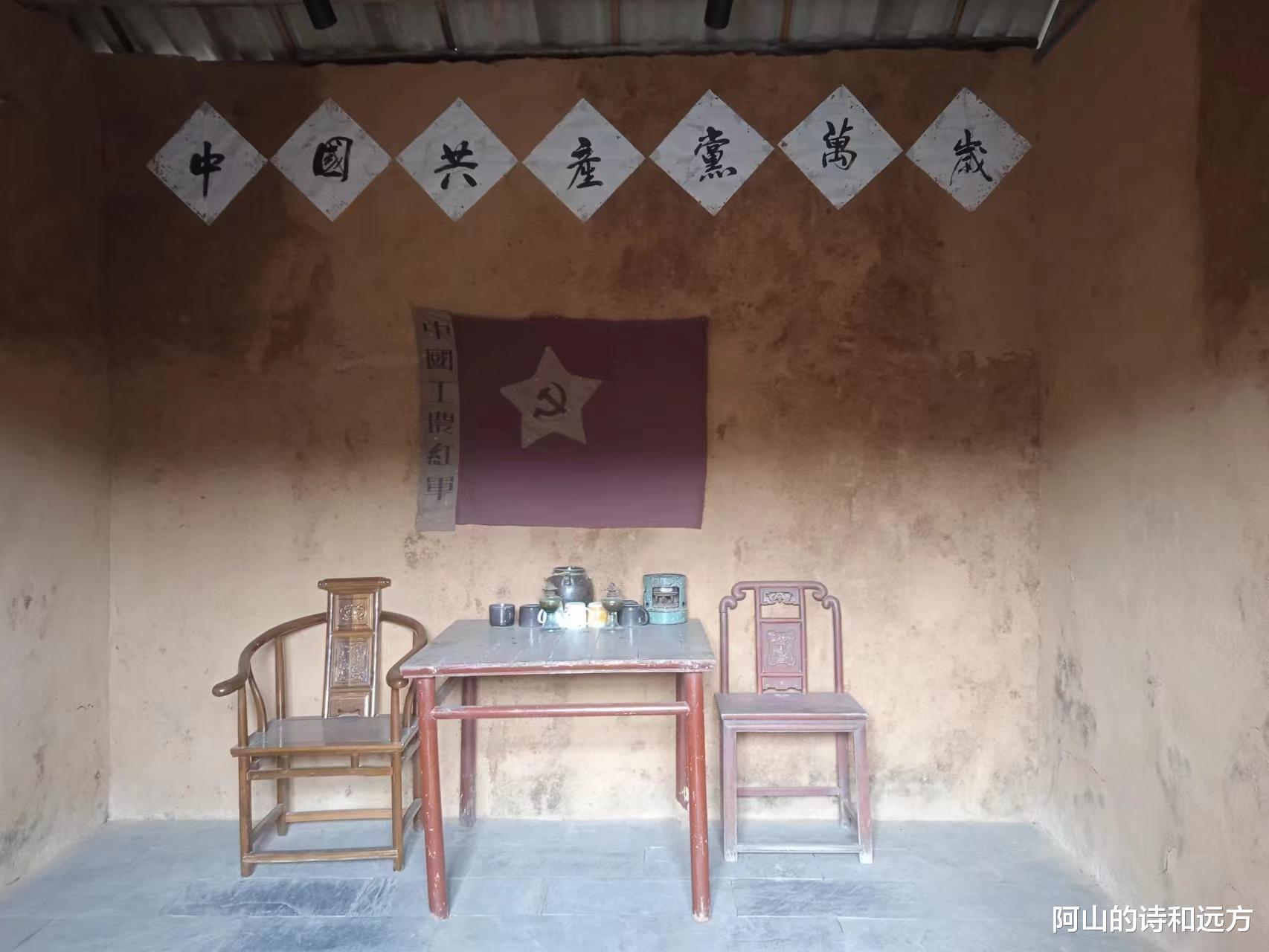 卧室里摆着一张木板床、一个盆架子、一架纺车。另一间屋子内的窗下,放着一张用于犁田的犁,另有一个木制衣柜、一张木板床、一只鸡笼、一只木桶内装一根木棒,还有一个打草鞋用的木凳子。旁边一间屋子,正面墙的上端张贴着“中国共产党万岁”7个大字,墙的中部贴着中国工农红军的旗帜,再下面的地上放着一张四方桌,两侧放着两张椅子,桌面上摆着1个茶壶、5个茶杯、2个无罩的马灯。