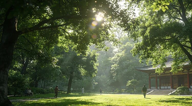公园绿树成荫、空气清新,是天然的“减压场”。火旺之年易上火、失眠,每天散步十分钟,既能舒缓情绪,又能增强体质。并且绿地开阔,形成“明堂”,代表着主人前途光明、人气兴旺。