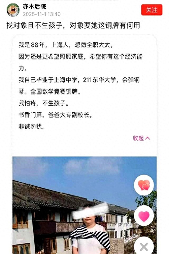 网传上海一全国数学竞赛铜牌女孩征婚条件有点白里透红,与众不同。