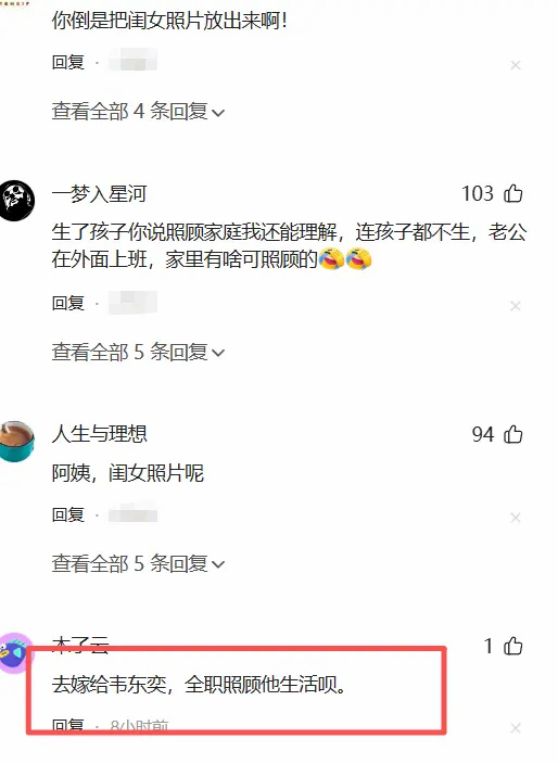 有网友说,只能说全职不生育就没有价值,如果自己财务自由是可以选择不生育的,要人家养还不生孩子,人家娶你干嘛?