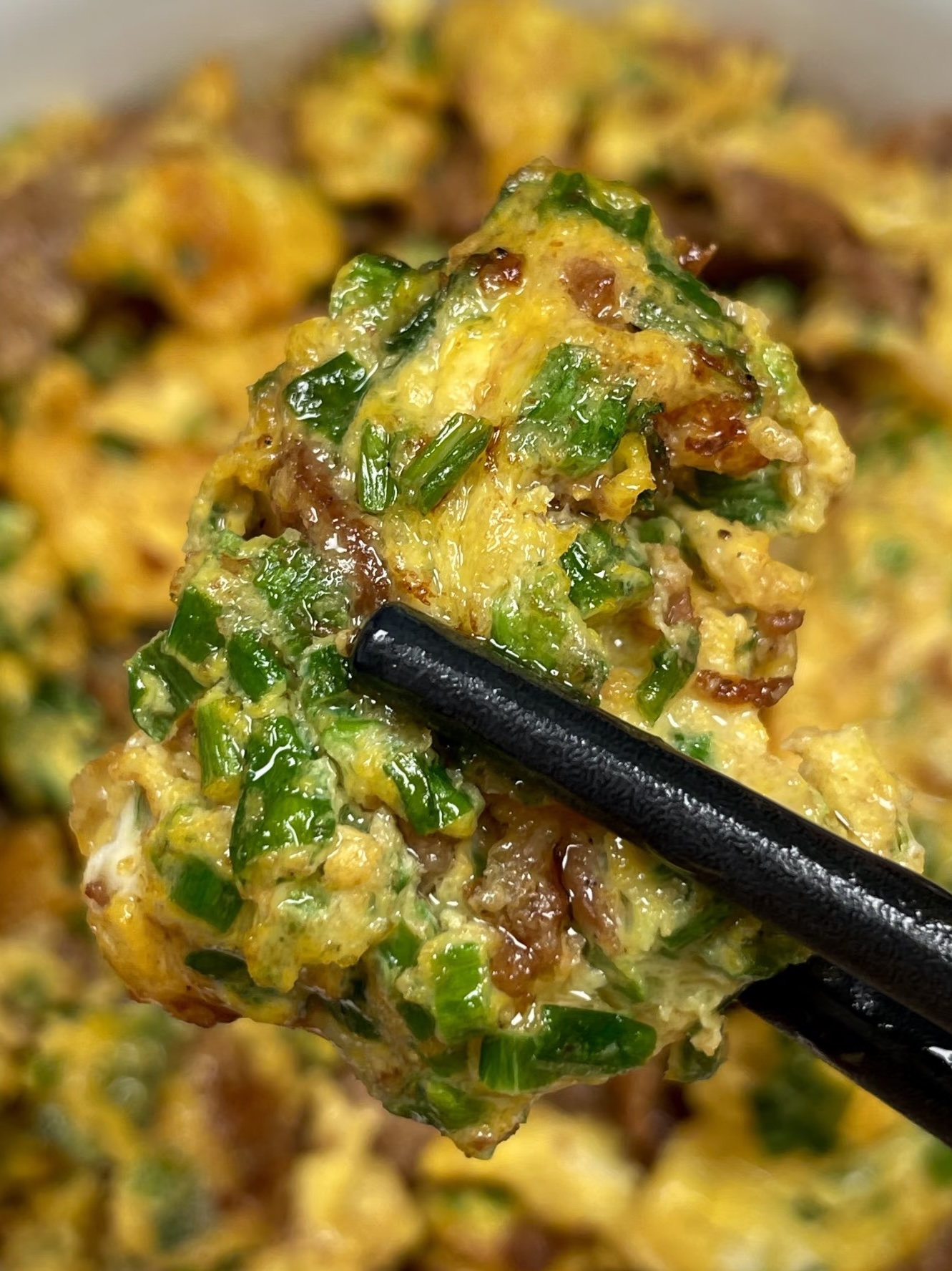 当蛋炒至七成熟时,将之前炒好的牛肉片倒回锅中,快速翻炒均匀。此时,牛肉的鲜香和蛋的嫩滑开始相互融合,形成独特的美味。最后,加入一小勺生抽,提鲜增色,再翻炒均匀,即可出锅。
