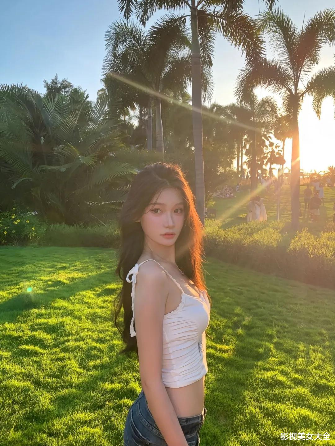 公园草地拍照时并脚站好,身体不用挺得太直,肩膀自然放松,头轻轻歪向一侧看着镜头,表情不用太多,用一个小小的笑就够了,这个拍照动作幅度很小,但画面会显得很干净,人站在草地上看起来温柔又自然。