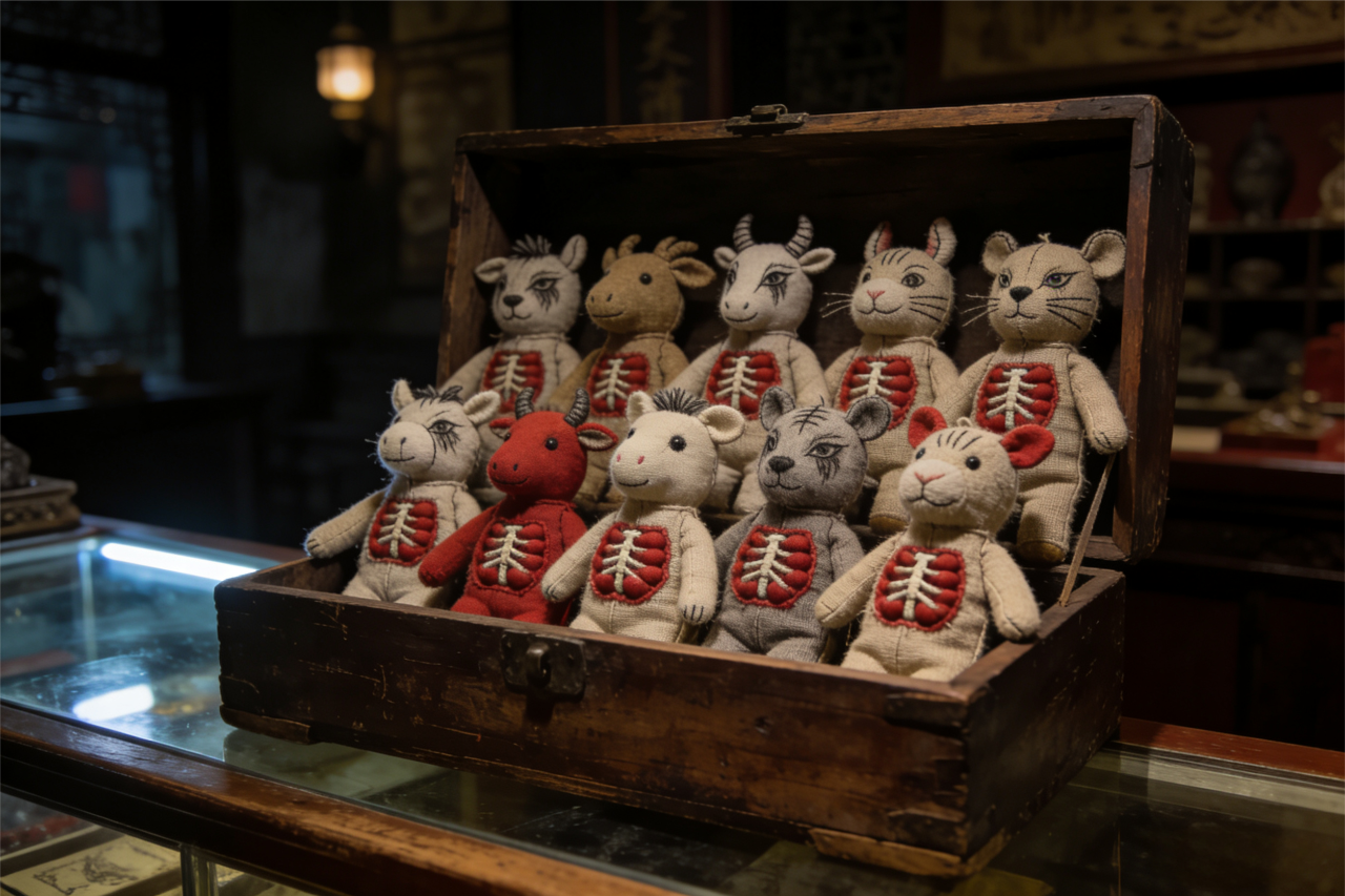 接生婆把那些东西缝到布偶里,用生肖、五行来给它们定位,希望它们在阴间有地方安身,不至于成为孤魂野鬼。