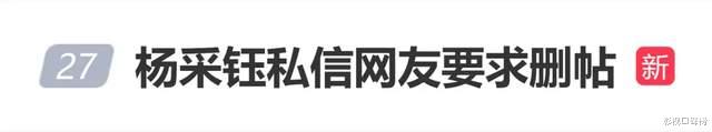近日,杨采钰私信网友要求删帖,登上热搜榜。