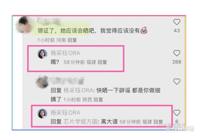 有网友直接在评论区里质疑,杨采钰回怼说:离大谱!