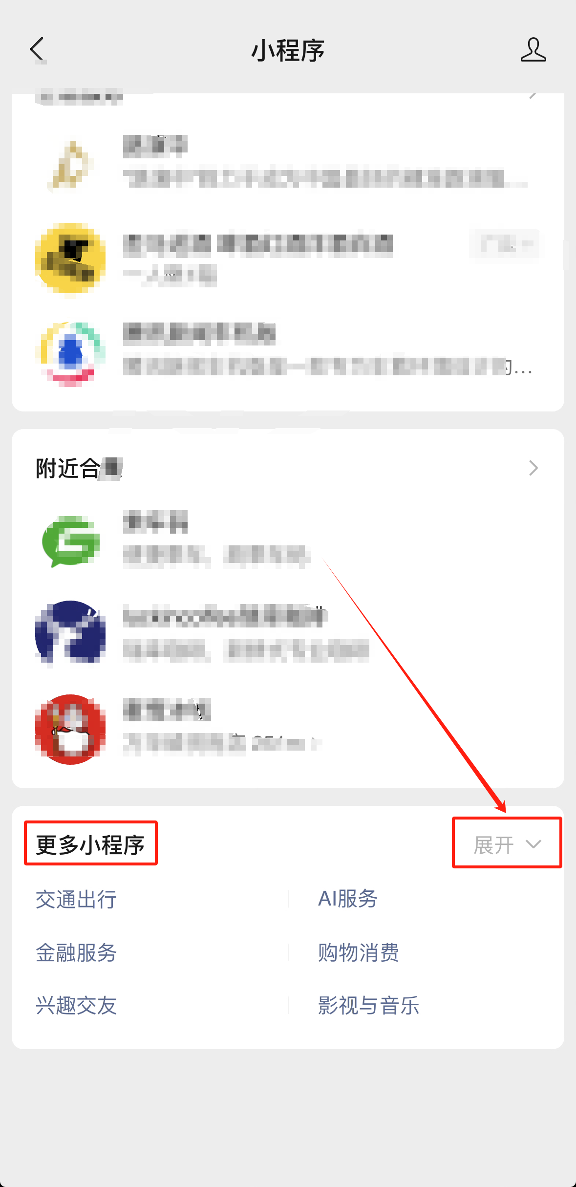 滑动屏幕到底部,我们会看到“更多小程序”的栏目,点击“展开”选项。