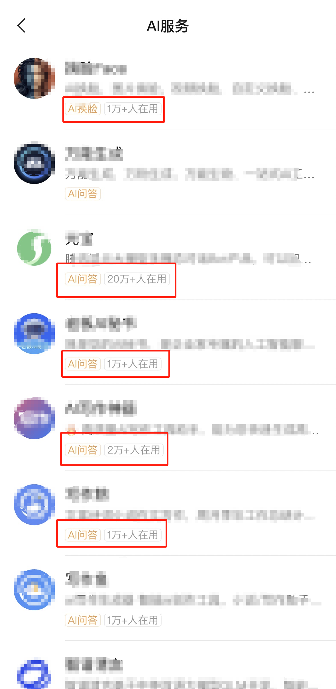 我们点击“AI服务”小程序类别,就可以看到相关的小程序;并且还可以看到多少人在用。