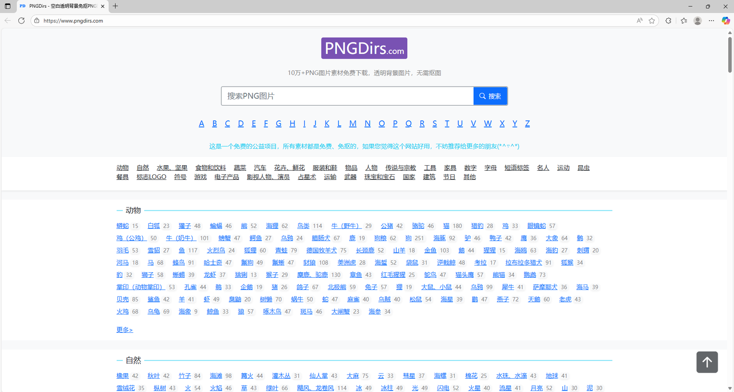 3、pngdirs这是一个拥有超10万张png透明背景素材,并且免费下载的网站。