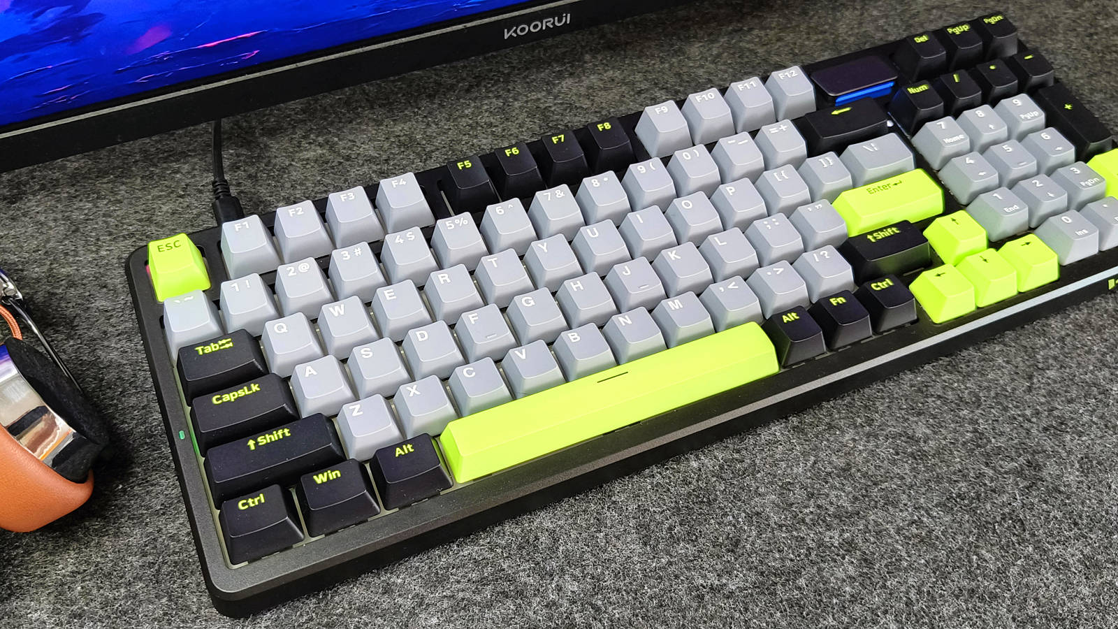 雷柏V700DIY-98键客制化多模机械键盘采用了98配列布局,键盘整体设计感十足。我入手的是初号骑士配色,黑灰绿三色的搭配,让沉稳的键盘散发出灵动的气息,配合幻彩RGB按键背光,让人眼前一亮。