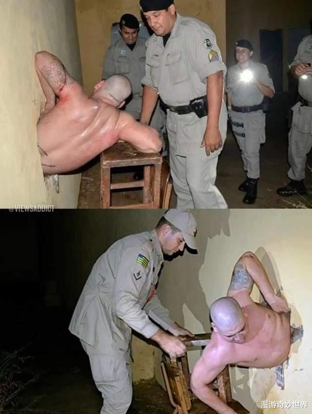 当然,用这种方式越狱,成功了是一回事,越狱失败那就尴尬了…201年,一名巴西囚犯试图打洞越狱,但是低估了自己的臀围,被卡在了洞中,后面的狱警小伙都憋不住了…
