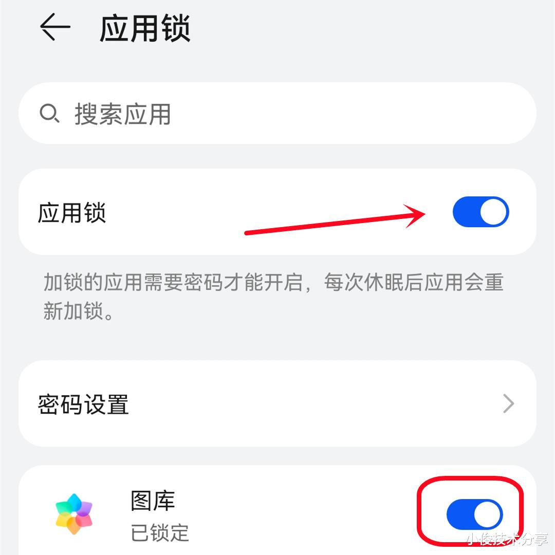 所以我们要打开手机上的设置,然后找到安全和隐私,接着点一下应用锁,找到相册和微信,把它们后面的开关打开,这样咱们在打开微信和相册时,就必须验证应用锁密码了!