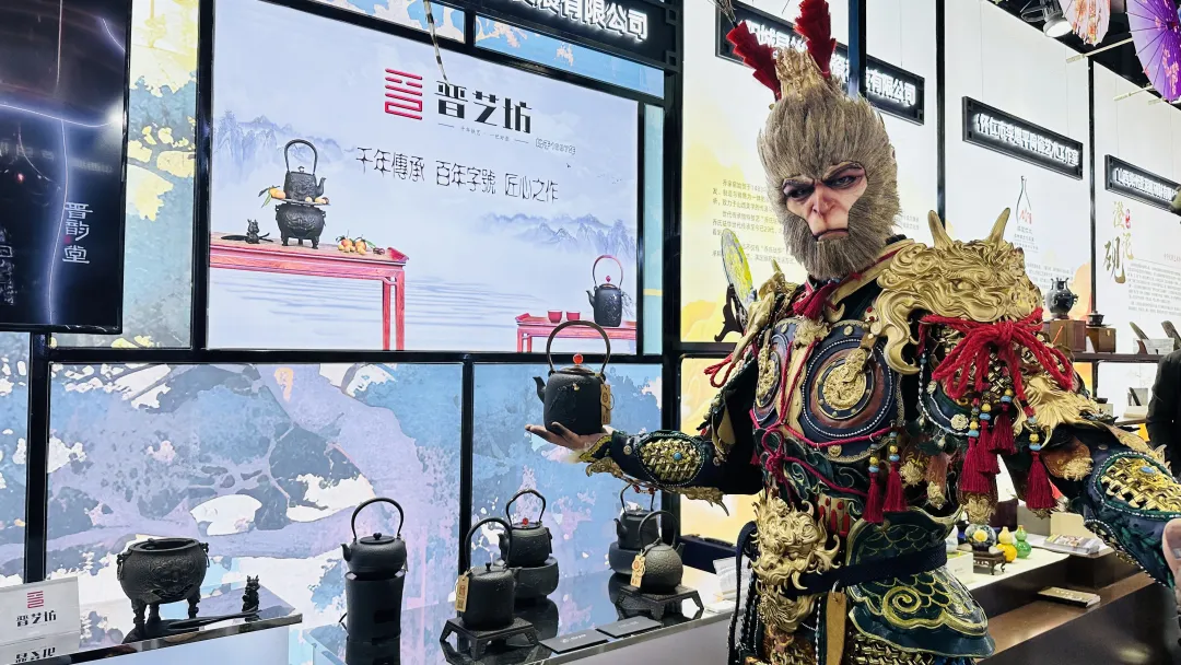 因《黑神话:悟空》热度的持续发酵,山西不断登上热搜,在进博会中,山西也仿佛从历史风尘中一路走来,云冈石窟、悬空寺、应县木塔、玉皇庙、晋城铁佛寺、青花汾酒、晋城铁壶、平遥推光漆器、乔氏珐华陶瓷……无不展示着山西文化的厚重。