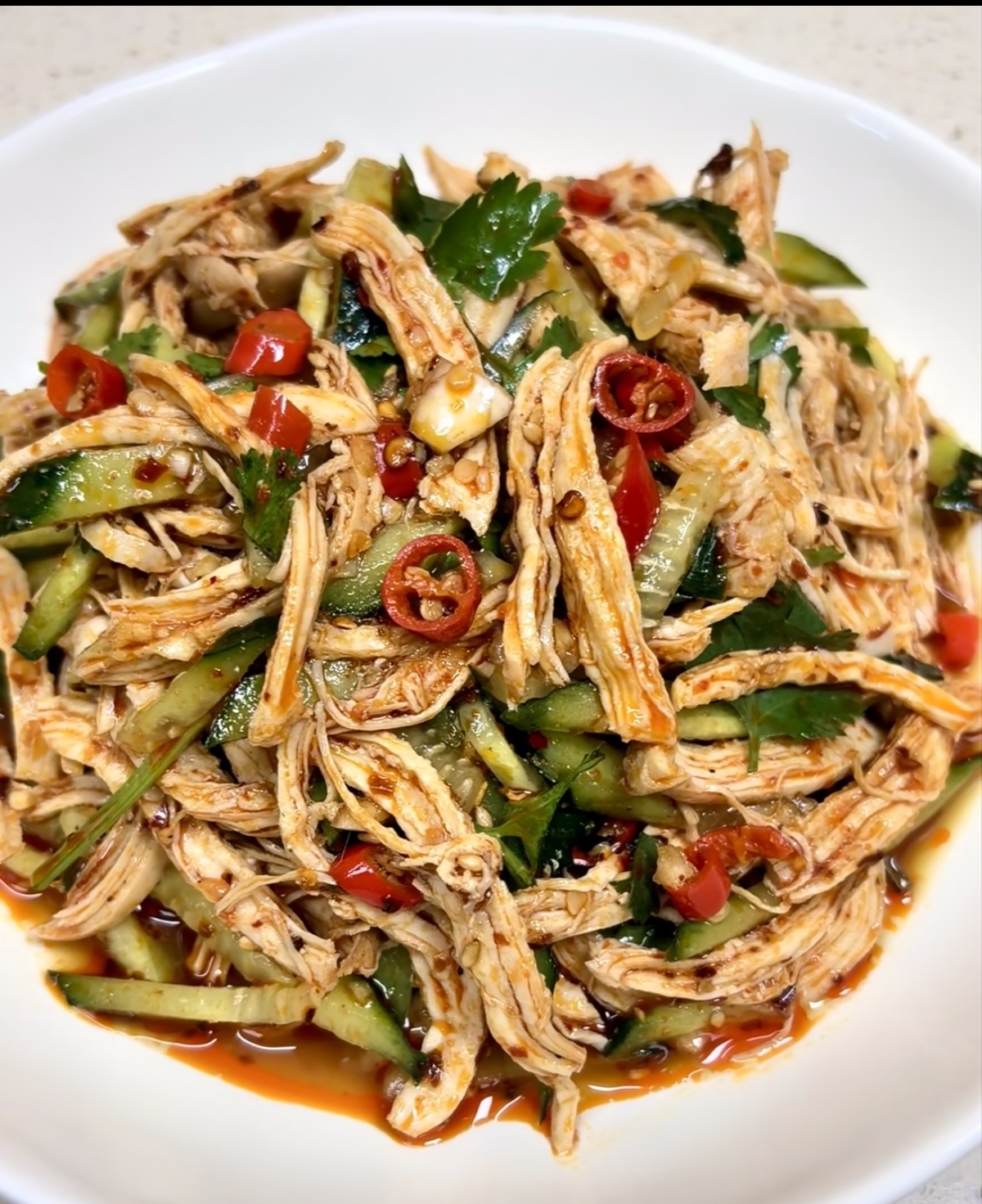 当麻辣的香气与鸡肉的鲜美、黄瓜的清脆完美融合,这道低脂高蛋白的凉拌鸡丝便宣告完成。夹起一筷子送入口中,首先是麻辣鲜香的料汁冲击着味蕾,紧接着是鸡胸肉的嫩滑和黄瓜的爽脆,口感层次丰富,回味无穷。这不仅仅是一道简单的家常菜,更是对健康生活方式的一种美好诠释。在这个追求品质的年代,让我们用这样一道既美味又健康的菜肴,为餐桌增添一抹亮色,也为身体注入满满的能量。