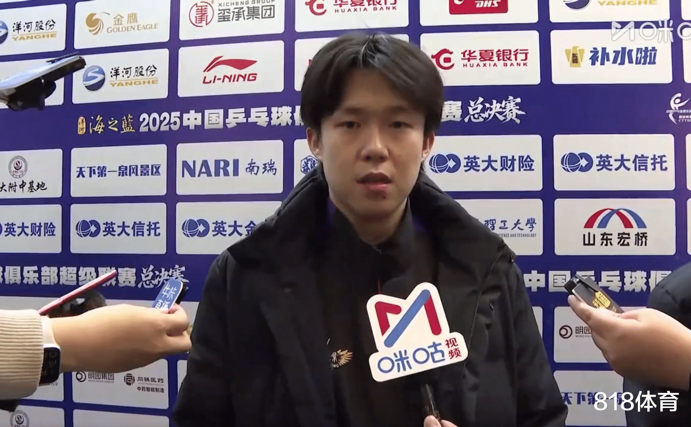 12月27日消息,12月27日结束的乒超总决赛男子团体半决赛中,山东魏桥3比0战胜上海地产,挺进乒超总决赛男团决赛。其中,王楚钦第二盘3比0战胜赵子豪,为队伍拿下一分。赛后采访时,王楚钦表示,自己不希望以两个退赛结束2025年。