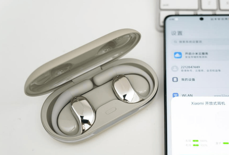 小米开放式耳机耳机外壳采用了质感十足的磨砂材质,不仅触感舒适,还能有效避免指纹沾染,保持外观的整洁,机的耳挂部分虽然柔软,但在弯折多次后,容易出现细微的变形,影响佩戴的贴合度。