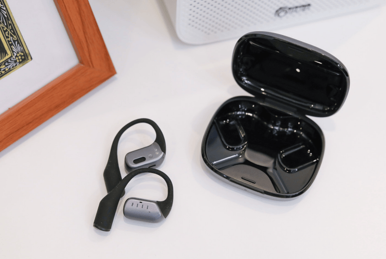 这款耳机外层采用了亲肤液态硅胶,触感柔软,重量轻,佩戴时几乎不会给耳朵带来任何负担。开放式设计让耳道保持通风,即便长时间使用,也不会有闷热感,适合偏好不入耳设计的用户。不过,由于耳挂较为柔软,在剧烈运动时可能需要适当调整位置,确保佩戴的稳固性。