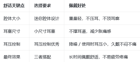 只要选择迷你腔体、小尺寸耳塞、耳压控制优秀的机型,就能实现戴久不痛,优先选择搭配只要选择迷你腔体、小尺寸耳塞、耳压控制优秀的机型,就能实现戴久不痛