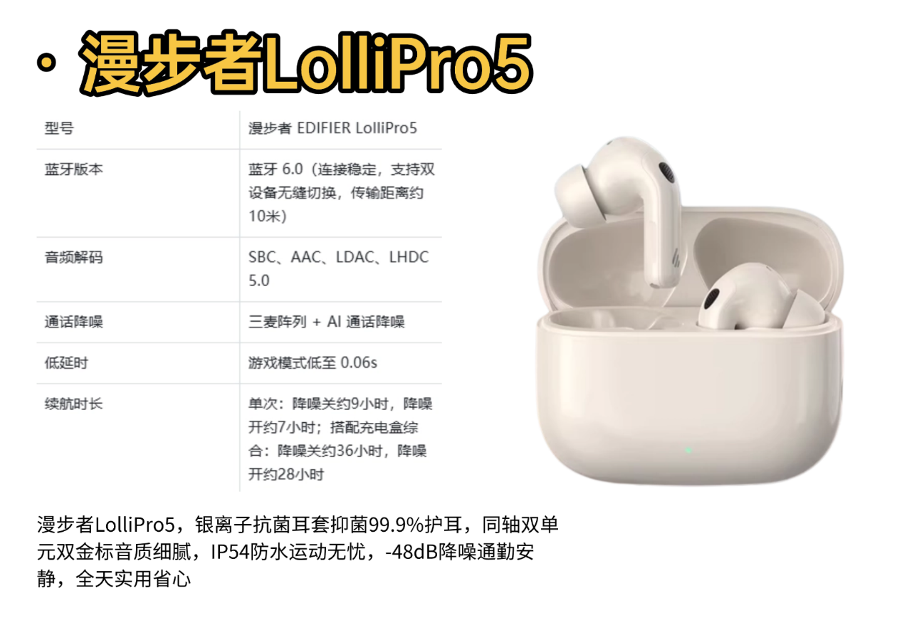 结论:适合注重耳道卫生和通勤党,银离子抗菌耳套抑菌99.9%护耳,同轴双单元双金标音质细腻,-48dB降噪通勤安静,IP54防水运动无忧,全天实用省心