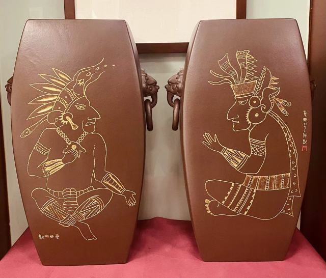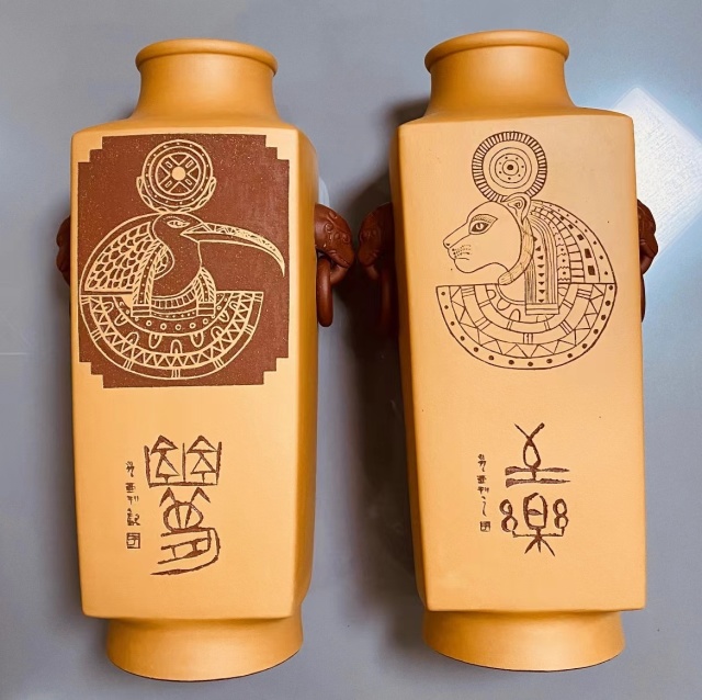 在艺术造诣方面,于光亚同志作为当代著名篆刻家,将篆刻与紫砂相结合,自创出独有的紫砂篆刻艺术风格,以刀代笔,刀法以冲刀、切刀为主,打破了几百年来千篇一律的传统紫砂陶刻,将篆刻手法融入其中,更能体现作品的金石味道和力量感。于光亚同志独创的玛雅风格和岩壁画风格作品更是前无古人,使传统紫砂艺术焕发出新的生机。该同志不仅在黑龙江省是绝无仅有的紫砂人材,更是高擎着南北方艺术融合的大纛,用自己的一份力量,推动着紫砂艺术的长足发展。
