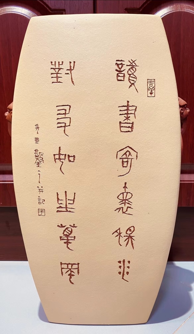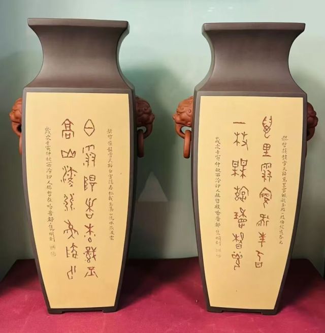此次于光亚先生的代表作品展,展现他在技法、题材与风格上的探索。有的承袭秦汉玺印的雄浑气韵,有的融入现代构成的抽象美感,每一件作品都是技艺与思想的结晶。紫砂独特的泥料特性,使篆刻刀痕在烧制后更显立体,触之可感,观之有味,形成独特的艺术语言。