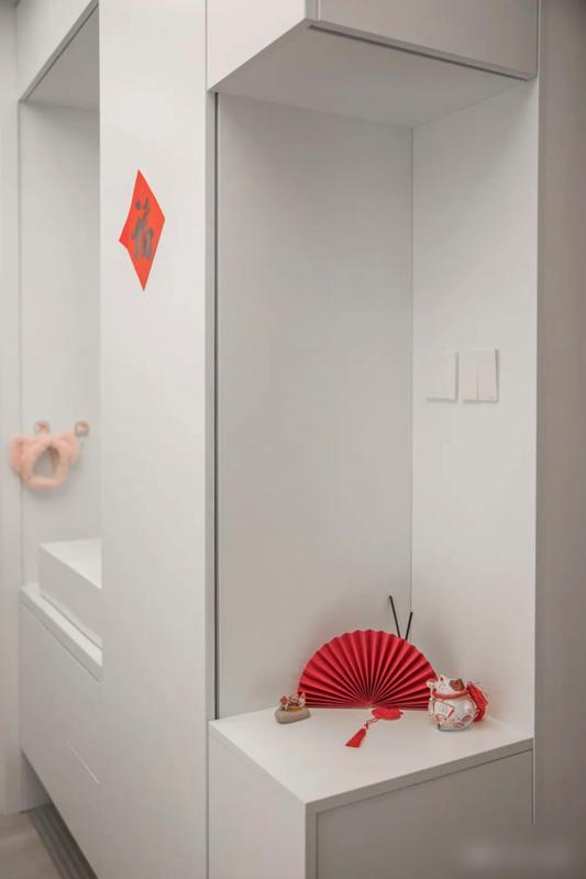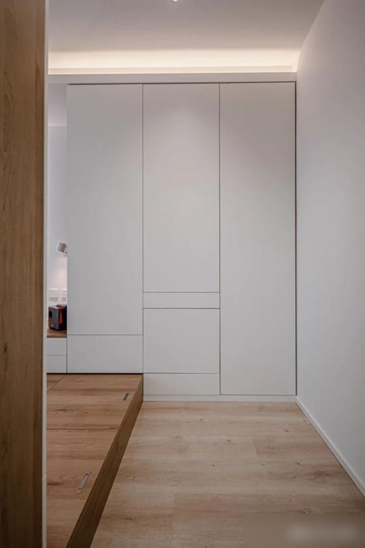 小户型家庭最头疼的收纳问题,这里用超薄鞋柜和悬空书柜轻松化解,既不占地又实用,像变戏法似的。
