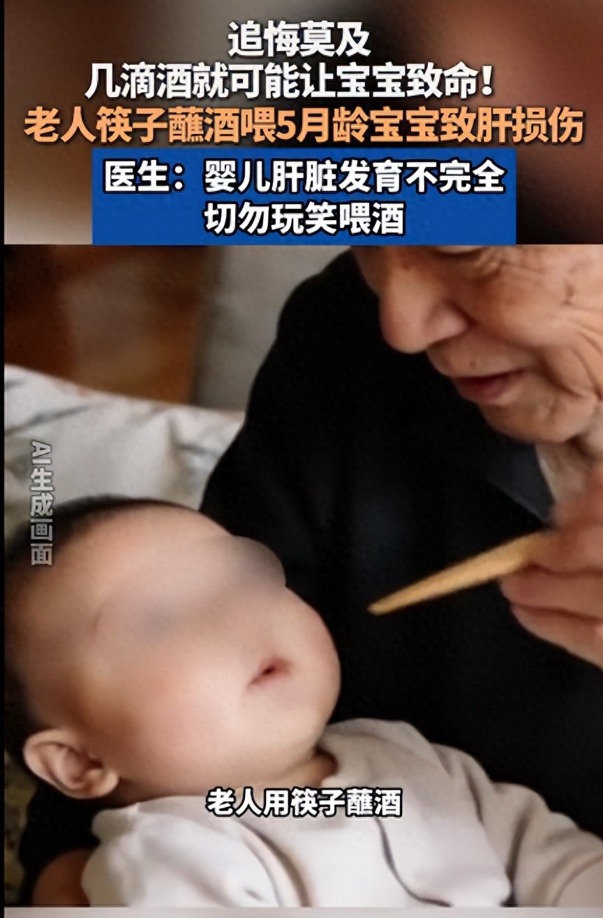 不少老人秉持“从小练酒量,长大好办事”“过去孩子都这样过来的”的旧观念,觉得微量酒精对孩子无害,甚至把孩子接触酒精后的皱眉、咂嘴等不适反应当成“有趣”,将逗娃取乐凌驾于孩子健康之上。其次,是对婴儿生理特点的无知,不清楚婴儿肝脏发育尚未成熟,代谢酒精的能力远不及成人,哪怕是几滴酒,也可能造成不可逆的伤害。