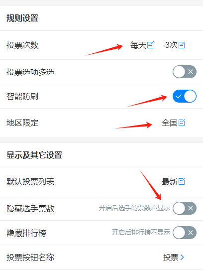 灵活设置分组投票或开放自主报名模式,或隐藏投票票数及排名功能。