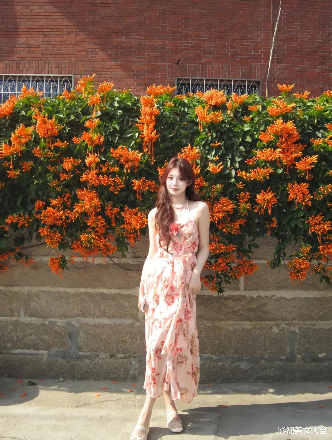 靠近花墙微微侧身站着,什么动作都不用做,只要对着镜头自然地笑,这样的花墙拍照姿势很简单,但效果很好,照片看起来很干净,人也会显得很漂亮,很适合日常发朋友圈。