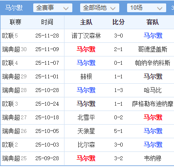 · 马尔默处境艰难:他们本赛季在欧联表现糟糕,进攻是第二大问题(仅进2球),且两个客场全败并丢6球。球队在瑞典联赛已结束,比赛状态和战意存疑。