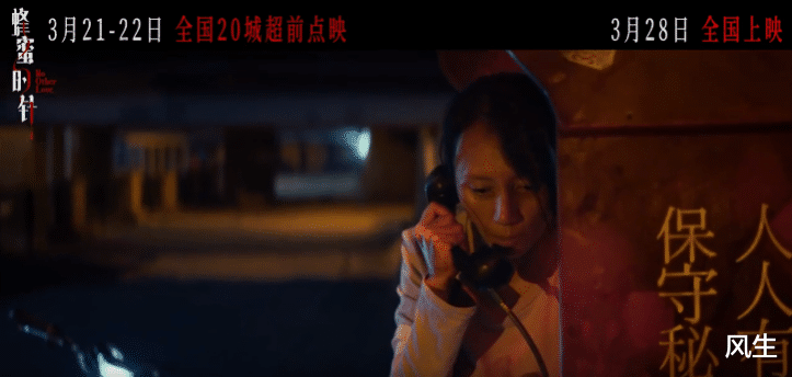 《蜂蜜的针》预告的第一个画面值得玩味:女主神色紧张,似乎正在伪造声音进行报警,而镜头又故意把电话亭旁的标语露出一半。