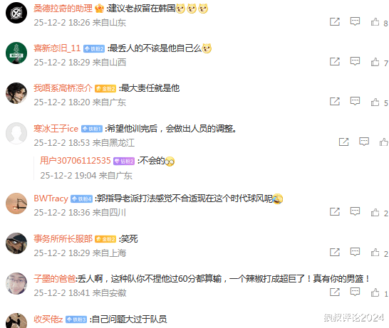 北京时间12月2日,涉及到中国男篮客场惨败韩国的赛果持续引发外界的热议,特别是在不敌韩国的当晚,中国男篮在更衣室开了接近