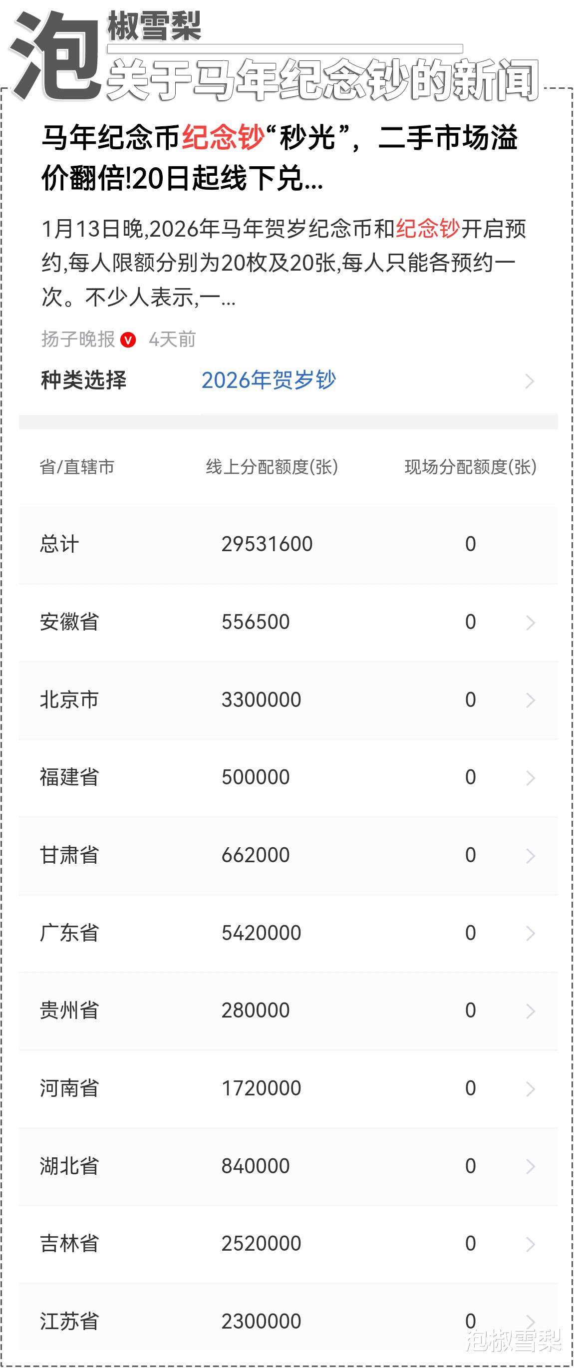 1月13日,马年生肖纪念币纪念钞发售当日,各大媒体上都刊登出一条“秒完”的新闻,很多预约者吐槽,预约开始后软件根本就进不去,等再进去时数量就成0了。