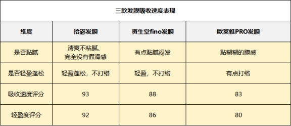 测评方法:邀请三名头皮油脂分泌较多的女生,使用这三款发膜,观察使用后头发是否清爽、不粘腻,最后评定每款产品的吸收能力。