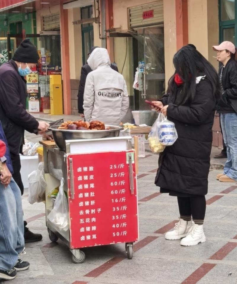 大冷天在紫恒帝景门口看见个卤肉摊,推车大叔冻得直搓手。那卤味红得发亮,香味勾得人走不动道,结果站了五分钟就我一个人在摊前晃悠。