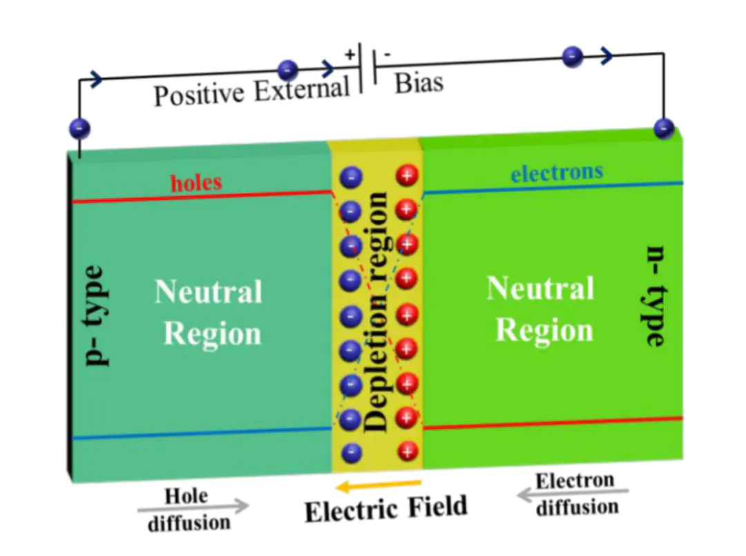 结的形成起源于。P型半导体因引入受主杂质而形成高浓度空穴,同时电子浓度极低N。当两者接触时,载流子将依据浓度梯度发生扩散:N区的多子(电子)扩散至P区,P区的多子(空穴)扩散至N区扩散过程导致区接收电子而部分受主离子被中和,N区接收空穴而部分施主离子被中和,进而在界面附近留下固定的离化受主负离子和施主正离子。这一区域内的固定电荷形成了空间电荷区,并在局域尺度上建立了内部电场。,能够阻止载流子的进一步扩散(图1)。