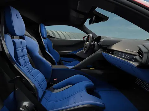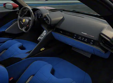动力系统方面,新车搭载的是4.0T V8双涡轮增压发动机+3电机,全新缸体、气缸盖与法拉利公路车史上最大的涡轮增压器,使其单独输出功率迸发出高达1050马力,峰值扭矩突破1300N·m。传动系统匹配8速双离合变速箱,动力传递直接迅猛,官方透露其零百加速时间仅需2.3秒,极速可轻松突破350km/h。7.45kWh锂电池支持25公里纯电续航,eManettino控制键提供混动、性能、排位赛三种模式。此外,新车还提供丰富的个性化定制服务,消费者可根据喜好选择车身颜色、内饰材质等,彰显专属身份。