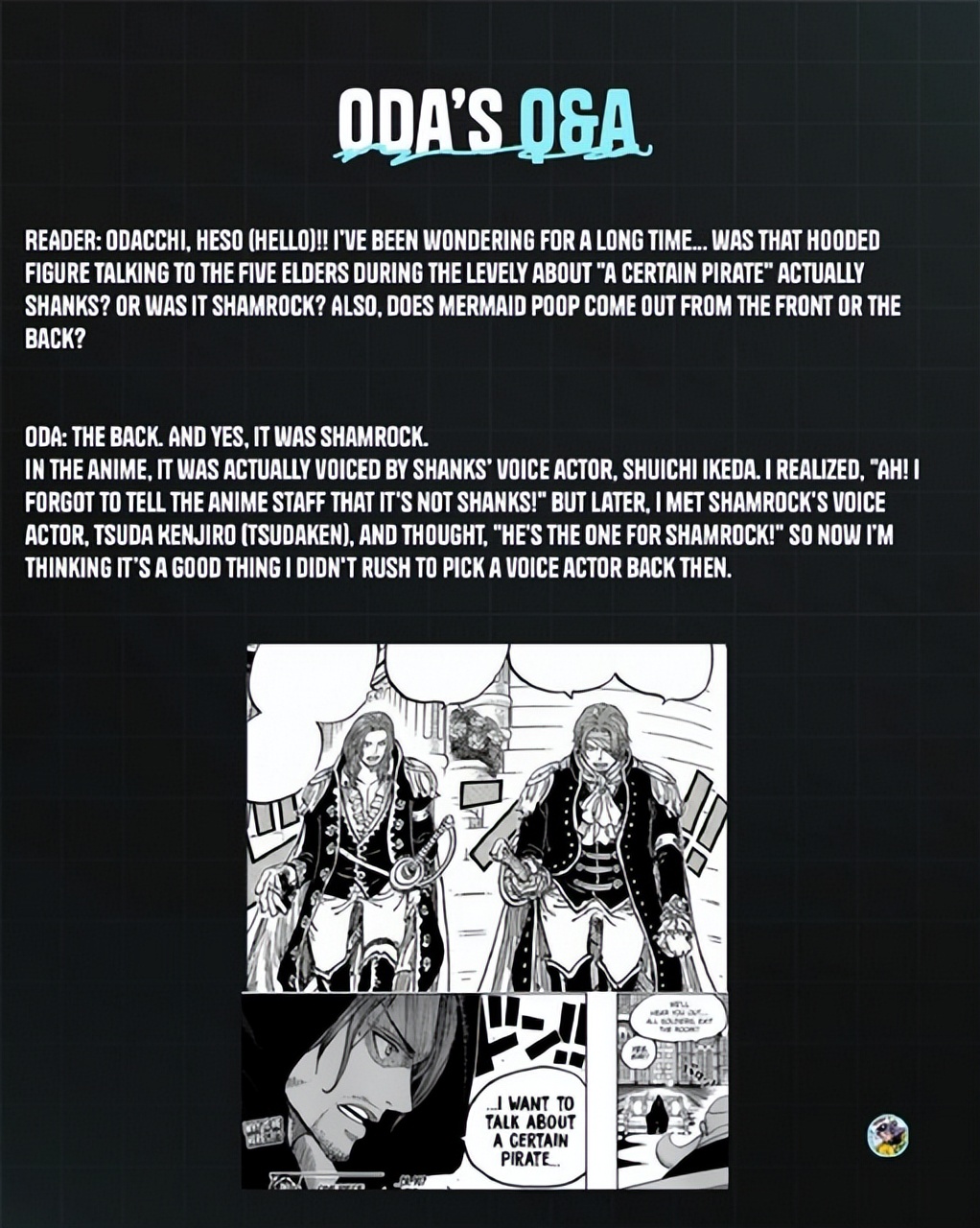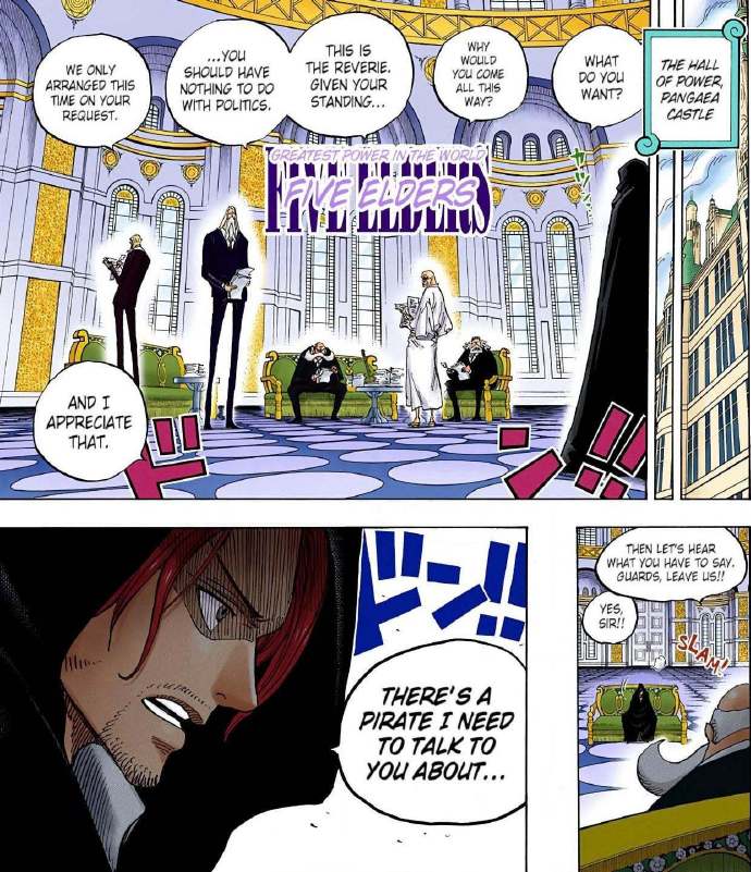 之后就是之前去见五老星的人,可以确定不是红发香克斯,而是他的哥哥夏姆洛克,不知道有多少人猜对了。