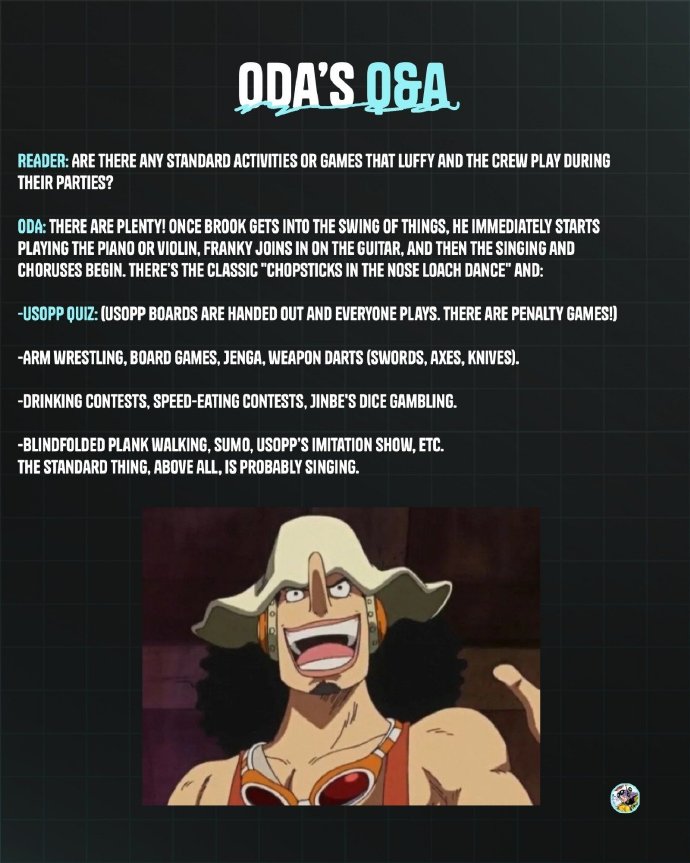 首先就是草帽海贼团在航行的时候,如果无聊就会玩各种各样的游戏,还有布鲁克这个音乐家配乐,这也是路飞一直想要音乐家的原因!
