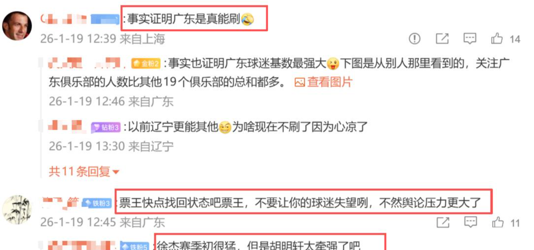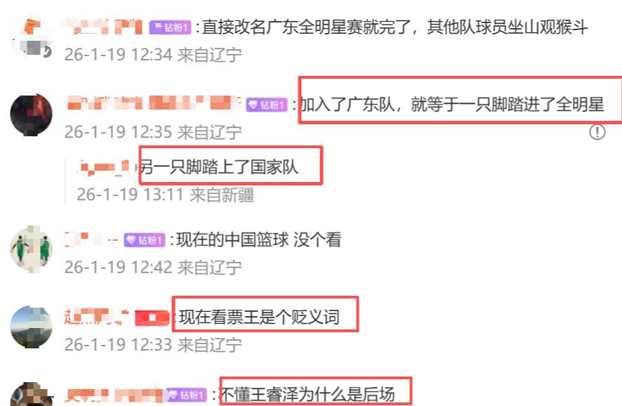赛后,网友们也纷纷发表了不同看法。有网友调侃“加入广东队,就等于一只脚踏进了全明星,另一脚踏上了国家队”;也有网友提出疑问,“实在不懂王睿泽为什么能进首发”;还有人针对广东队球员的入选情况发表观点:“徐杰赛季初期打得很猛,但近几场发挥并不算好。