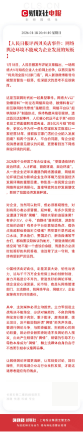 专家指出:某网红为了流量,为了利益,不择手段地扼杀企业名誉与企业生命,违反了中央重视民营企业与民营经济、贯彻落实《民营经济促进法》、改善民营企业营商环境的精神,与二十届四中全会“四稳”——“稳就业,稳企业,稳市场,稳预期”的要求背道而驰。对于动辄否定、污化、丑化民营企业家,热衷于网络传播谣言,夸大其词,吸流变现的,应建立快速举报、快速处置的机制。