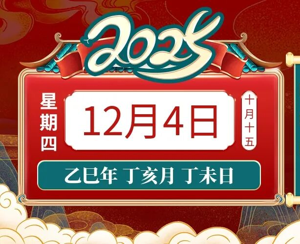 2025年12月4日,星期四,农历十月十五 (乙巳年丁亥月丁未日),法定工作日。