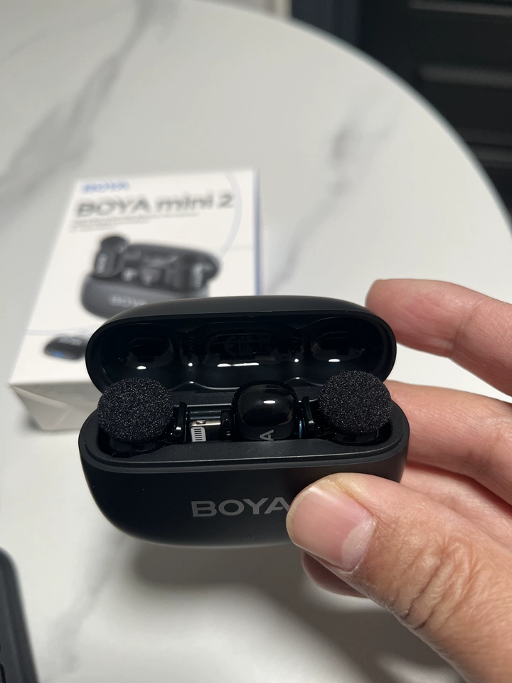 该产品整机设计小巧,单个发射器重量仅约5g,佩戴在衣领上几乎没有负担,外观隐蔽,不会影响画面观感。在音质方面,BOYA Mini采用电容式全向咪头,支持48kHz/16bit 音频采样,人声还原自然比较清晰。设备内置多档降噪功能,在室内口播或一般户外环境中能够有效减少背景杂音。在连接方面,麦克风采用2.4GHz无线传输技术,支持即插即用,手机连接简单方便,在无遮挡环境下传输距离约100米,日常拍摄稳定性较为不错。续航方面,单次使用约6小时,搭配充电盒综合续航约30小时。
