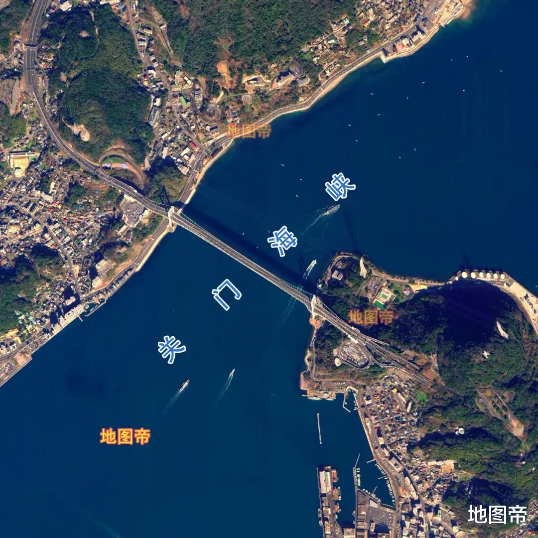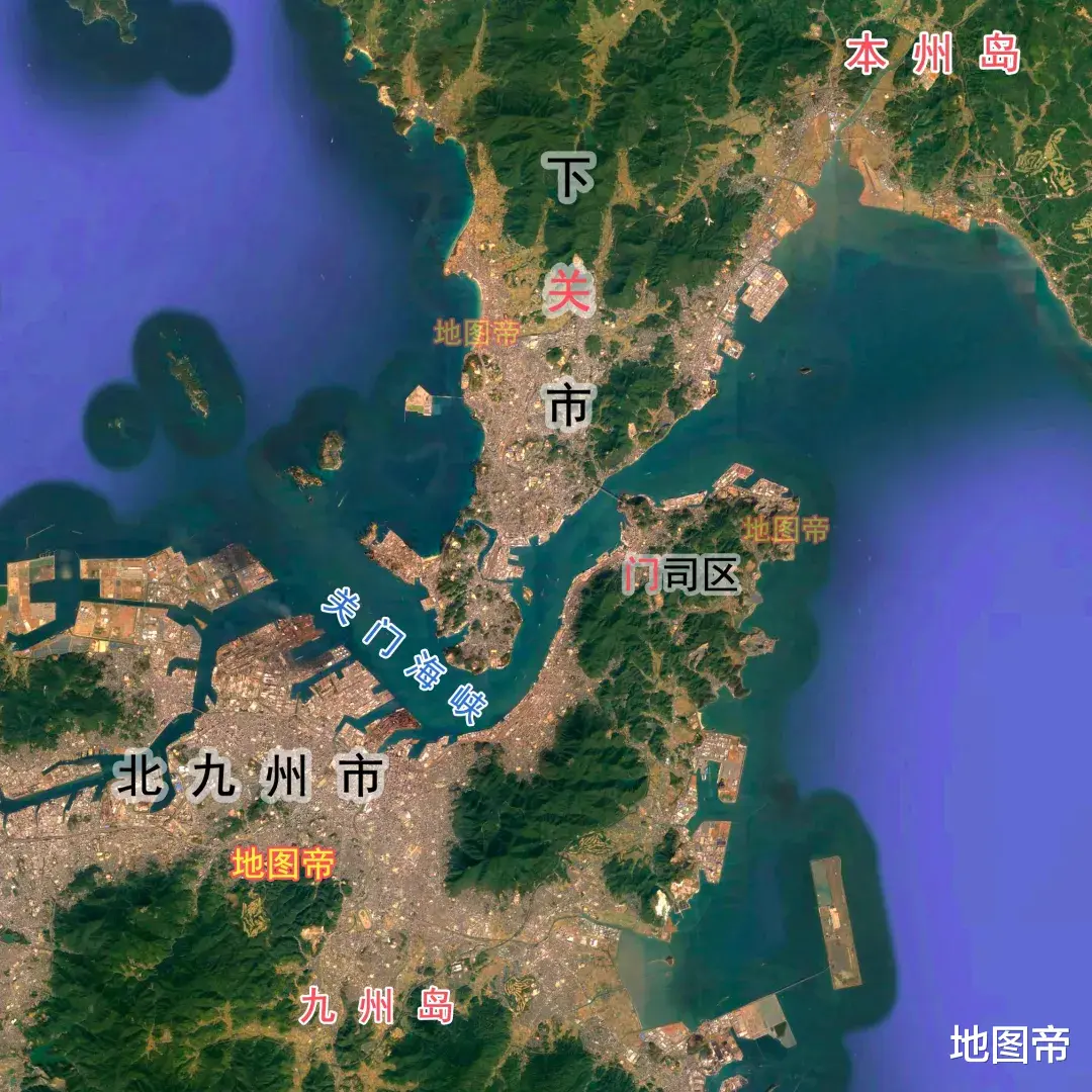 关门海峡,即马关海峡,位于本州岛与九州岛之间,西为对马海峡,东为濑户内海,最窄处约600米,最深47米。