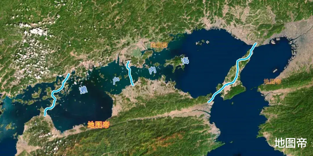 本州岛与四国岛之间,有三条跨海通道,从东往西分别是:本四东线(神户淡路鸣门道)、本四中线(濑户中央道)、本四西线(西濑户道)。