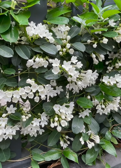 马达加斯加茉莉因其生长迅速,皮实好养,并且开花带有茉莉花一般的香味,而深受花友们的喜爱。马达加斯加茉莉是一种攀援灌木,叶片厚实油绿,四季常青,不开花的时候,是一种很好的观叶植物,而它的花朵则成簇开放,洁白清香,常常被用作新娘的手捧花。