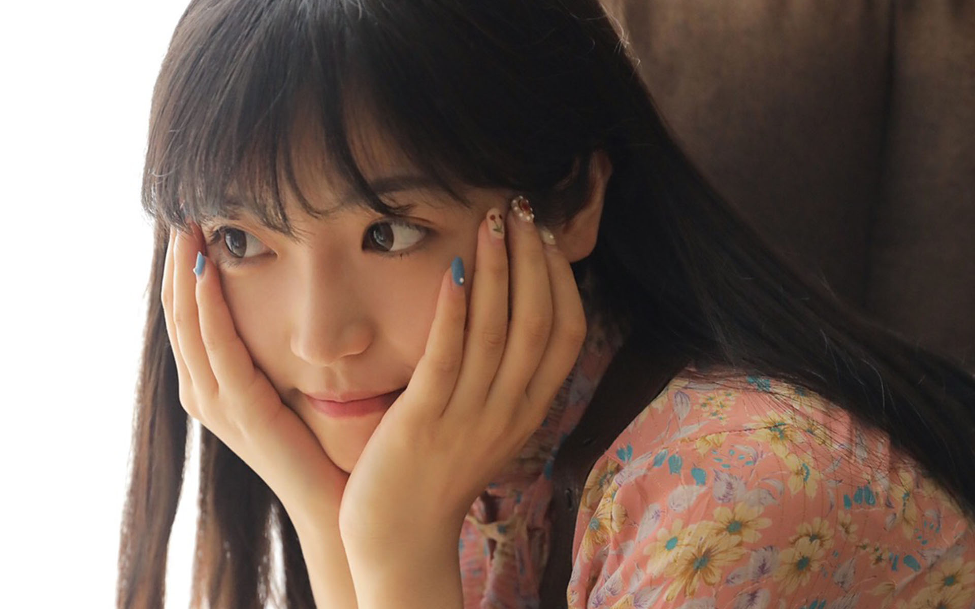 头发和脸蛋都是保养得当的,甚至还做了一个裸色的美甲。