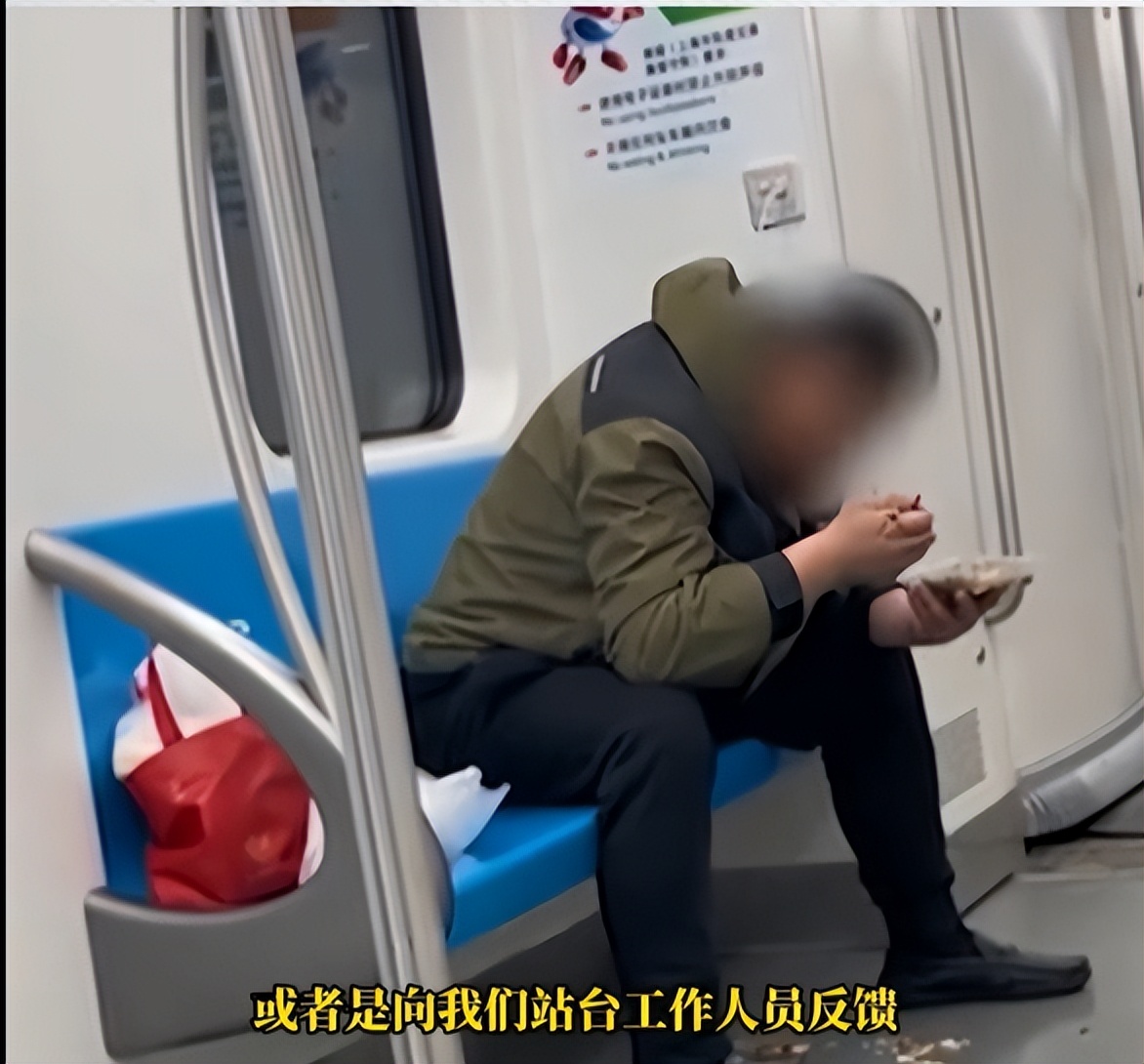 当时一名女子乘坐上海地铁8号线,这同一车厢的还有一名男子。男子坐在座椅上吃盒饭,全然不顾他人的感受,食物的味道弥漫了整个列车。本来在地铁上吃东西就是不允许的。但是这名男子不光吃,而且把吃完剩下的骨头往地上吐,这一行为恶心到了同车人员。