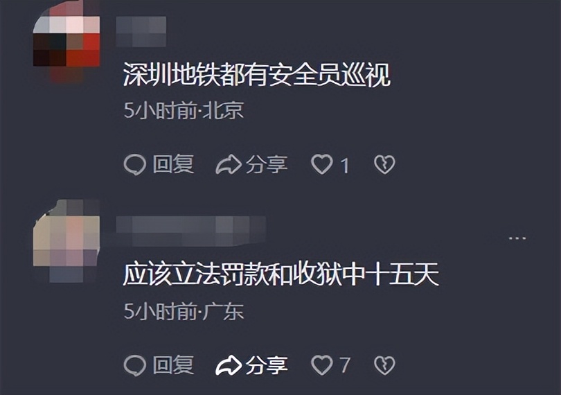 上次有个早高峰也遇到了一个类似的奇葩,往地上扔鸡蛋壳,列车上有人指责他乱扔垃圾他一脸不屑,后来有个大爷弯腰帮他捡,他还叫大爷不要管,最后乘客下车找保安。不知道这个人处理了没有,有些人是无法用言语沟通的,要给他们适当的处罚他们才会变得更好。